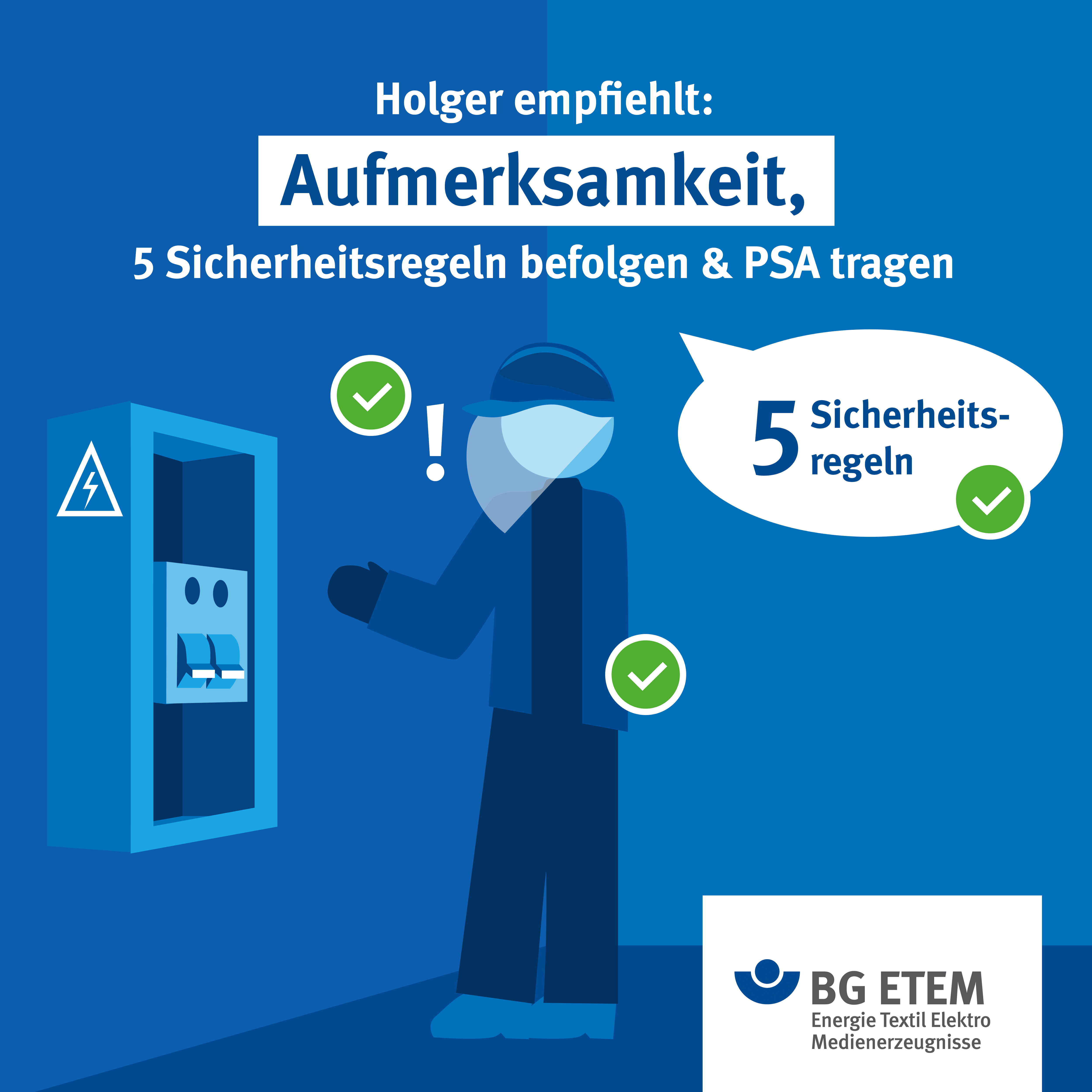 - 5 Sicherheitsregeln (Lernmodule): www.bgetem.de, Webcode 12203300