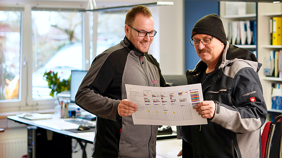 Maria Pfundmeir: Wir haben mit einer Unternehmensberatung zusammengearbeitet und dabei gelernt, wie man eine Organisation aufbaut, Mitarbeitergespräche führt, den Arbeitsschutz systematisch integriert und Strukturen schafft. Unser wichtigstes Werkzeug ist unser Betriebshandbuch. Das erfasst die Abläufe und Anforderungen. Beispiel Rohbau: Wie sind die Bedingungen vor Ort? Welche Maschinen brauchen wir? Wie wollen wir den Rohbau hinterlassen? Worauf müssen wir achten, wenn wir Leitern, Bohrhämmer oder Schlitzfräsen verwenden?